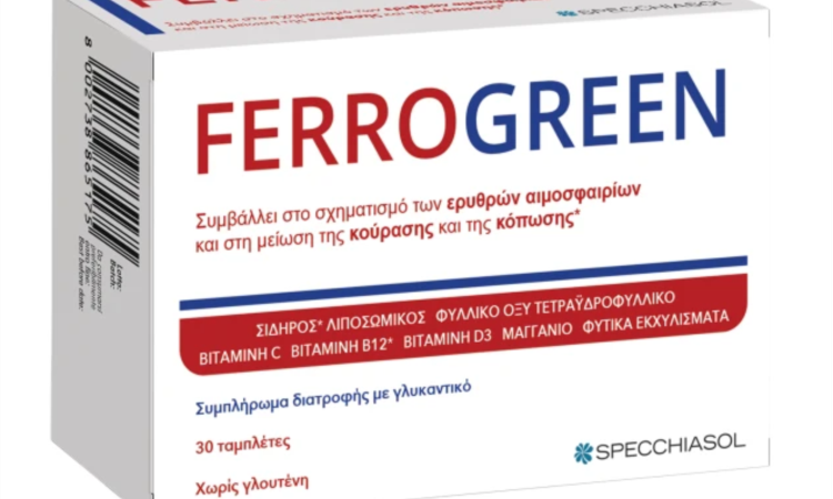 Το Ferrogreen της Specchiasol (Αρ. Γνωστ. ΕΟΦ 108238 / 30-11-2017) διαθέτει λιποσωμιακό σίδηρο, βιταμίνη C, Β12, φυλλικό οξύ, και εκχυλίσματα από παντζάρι και σπανάκι. Το Ferrogreen είναι lipocoated, δηλαδή ο θειικός σίδηρος που περιέχει περικλείεται μέσα σε λιποσώματα, προστατεύοντας έτσι το σίδηρο από το να αλληλεπιδράσει με το στομάχι/έντερο, μειώνοντας τις γαστρεντερικές παρενέργειες και βελτιώνοντας την απορρόφηση.